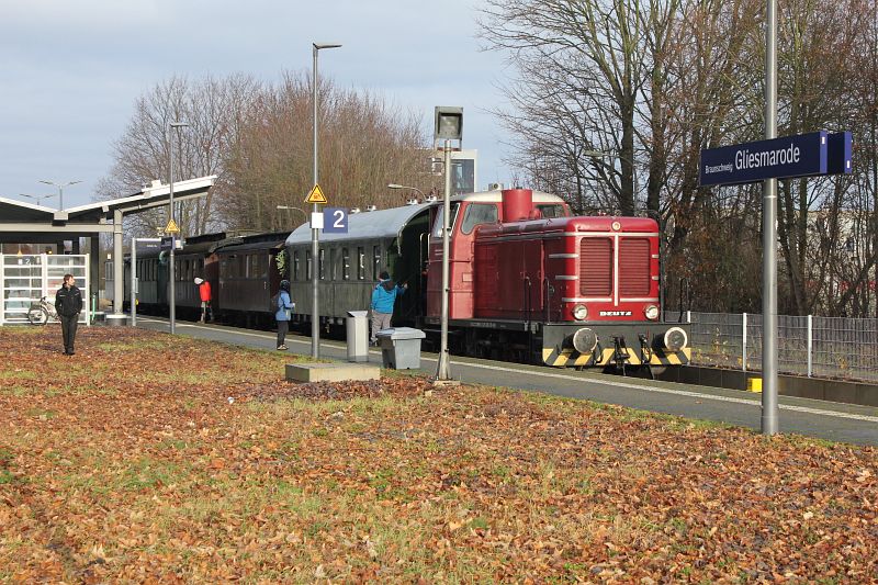 | Kein Zugverkehr zwischen Braunschweig Hbf und Gifhorn 06.04. -12.04.25 (28.03.25): Im genannten Zeitraum findet wegen Gleisbauarbeiten Schienenersatzverkehr statt (siehe Meldung bei erixx). |