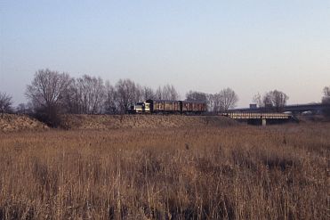 | Als Flachlandbahn wies die Strecke Braunschweig - Celle nur wenige Kunstbauten auf. Markant war z.B. die Fuhsebrücke südlich von Uetze, hier mit Üg 67011 am 29.06.88 (Aufnahme: S. Pikart). | Im Einschnitt südlich von Wendezelle ist hier Üg 67011 als Kurzzug auf der Rückfahrt nach Braunschweig Rbf unterwegs. Aufnahmestandort ist eine noch heute vorhandene Feldwegbrücke (Aufnahme: S. Pikart). | |