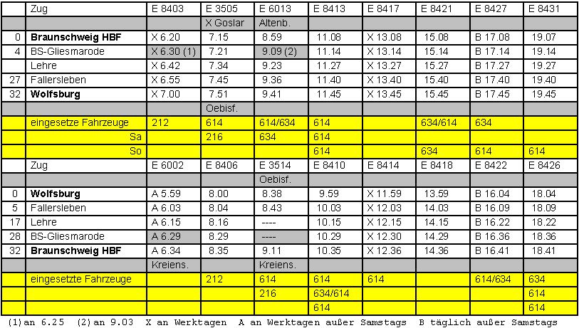 Altenbeken - Wolfsburg. Besonders interessant war diese an Samstagen,