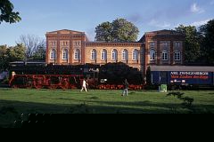 Kulisse hätte kaum besser sein können: 03 1010 und 35 1097 vor dem historischen Empfangsgebäude. |