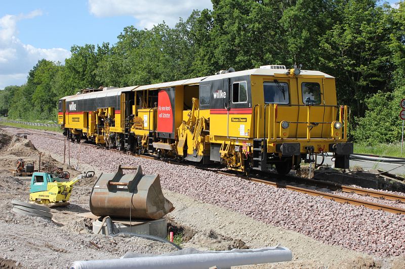 Stopfmaschine/Schotterpflug und "Mini-Schotterzug" sind unentwegt im